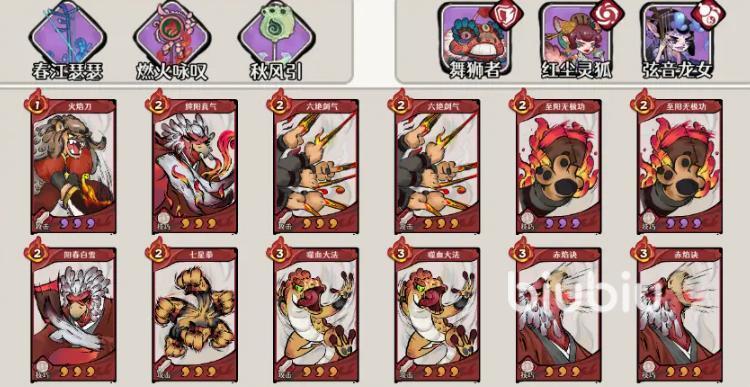 绝对核心是“红尘灵狐”,主要承担着输出的责任。通过火焰刀、纯阳真气、六绝剑气等卡牌不断给敌方叠加灼烧后,再使用专属卡牌“红莲印”来一次性触发目标身上的全部灼烧效果,往往能打出超高的伤害数字。