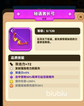 这把长弓可以通过合成的手段来获得,所以在强力的同时也是大家算是比较好得到的史诗级武器,它可以增加72攻击力,提升5%的攻击力,使用时会发射出强而有力的箭矢,成功击中怪物后还有30%的概率引起范围爆炸,形成更高的输出。