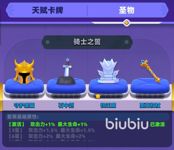 虽然装备没有套装效果,但圣物有,圣物是一种养成系统,主要是提供加成和属性,凑齐特定的圣物也有套装加成,品质从蓝到红有四个稀有度,主要是通过祈愿抽。