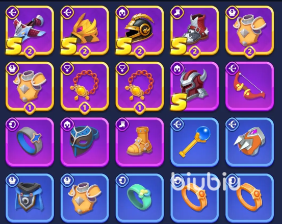 此外,还有一些特有的S级装备,这个要比普通装备更厉害,但是获取难度很高。从紫色品质的装备开始就有装备专属效果了,更多时候玩家是根据效果来攒合适加成的装备。紫色品质以下的装备,每3件同品质的可以合成一个件更高品质的。