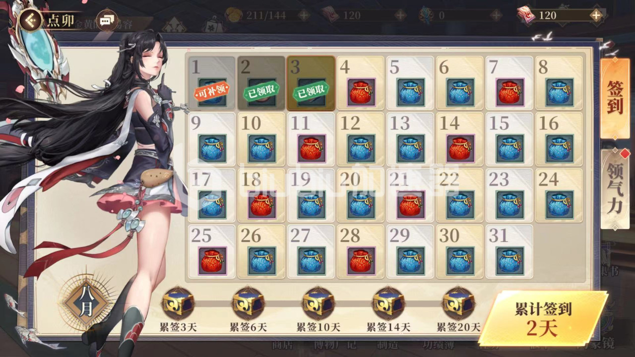 玩家可以通过各项福利进行领取相应的奖励。在邮件中玩家可以通过领取游戏中提供的各项邮件,其中含有各种不同的道具奖励,通过领取道具奖励即可获得相应的道具。可以通过登录奖励领取7日登录中各种不同的道具奖励。可以在点卯中通过各种不同的签到日期,领取签到奖励和额外宝箱奖励。