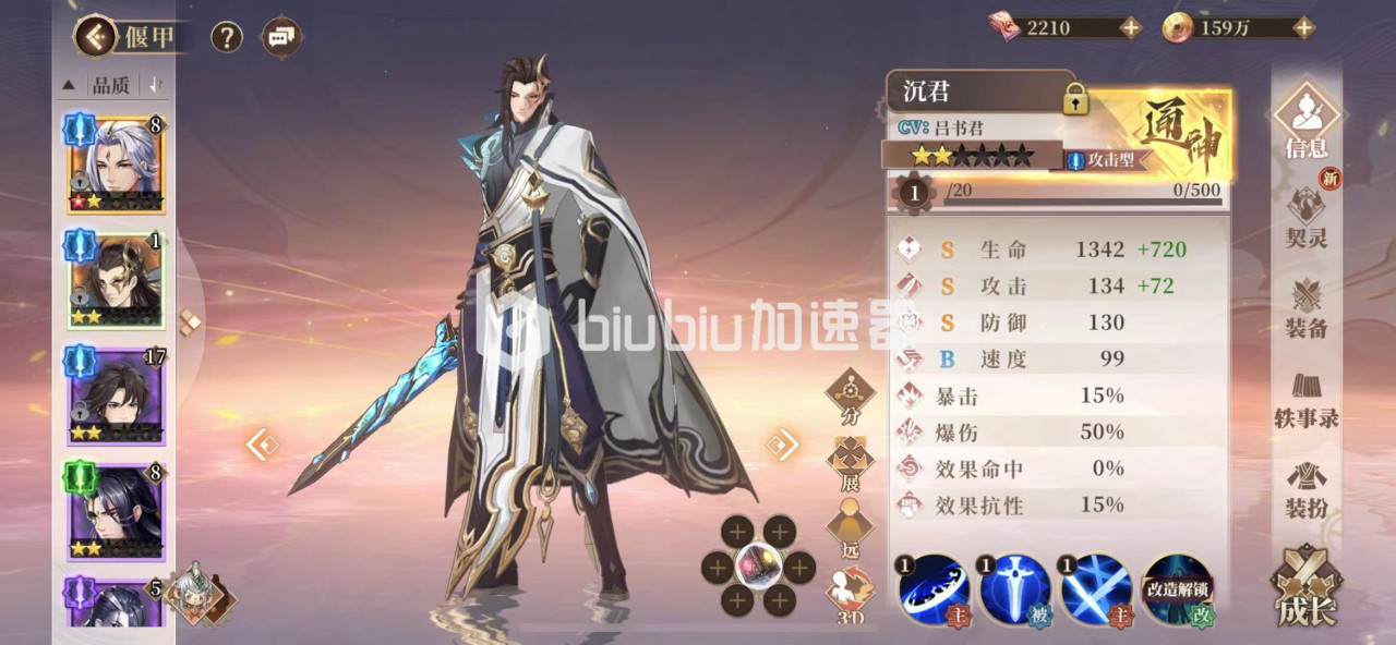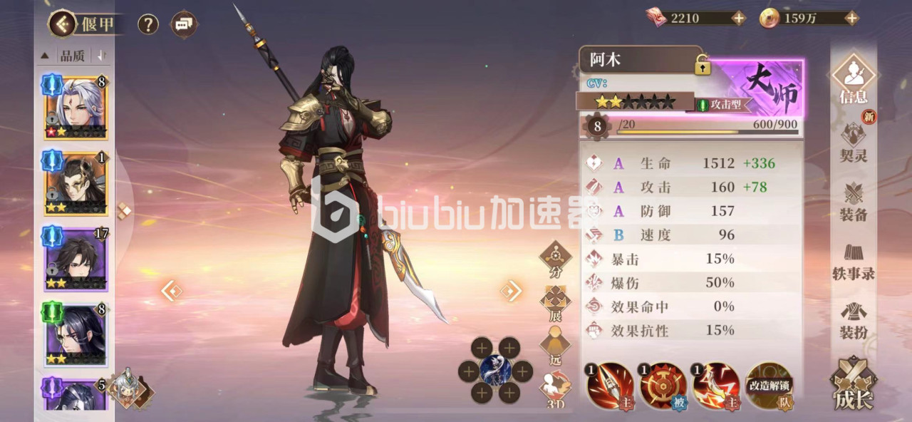 阿木和沉君有很多相似的地方,比如在攻击上面,只要有沉君在的地方,就可以一直选择阿木,无论是生命值,攻击值,防御值以及速度值,都不次于沉君,反倒是与沉君互补,技能也是相当不错的。