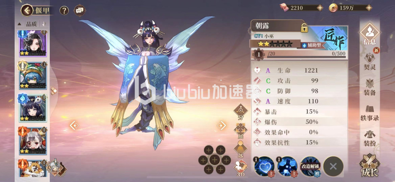 朝露是必备奶妈,单体就可以恢复技能20%,在前期开荒推本时总得有个会治疗的队友,朝露的一手净化就挺实用的,还可以净化DEbuff,在战斗中能为队友恢复生命30%的生命值,并能驱散其队友身上的弱化效果,同时能对单个敌人能造成140%的伤害值,还能在对局中利用35%的概率使其减速2个回合。