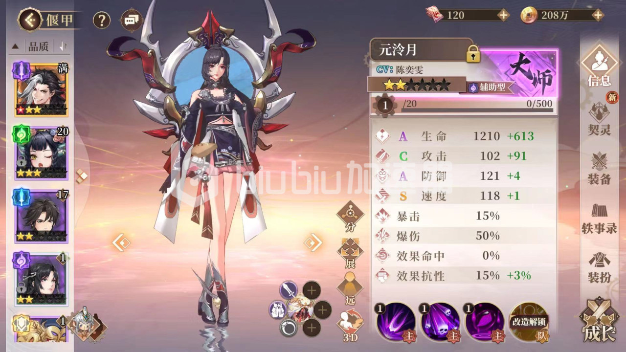玩家进入游戏后,可以在主页面中看到召唤功能,进入召唤后可以看到包括活动召唤和恒久召唤。通过消耗高级图纸,元契图纸和普通图纸可以随机召唤出偃甲,契灵和急速素材道具等。当通过选择恒久偃甲来进行0次召唤后可以大概率获得元泠月偃甲。当获取成功后可以在主页面中的偃甲中看到冷凌月。冷凌月属于辅助型的偃甲属于大师级别。可以看到他的生命值超高。通过对冷凌月进行携带契灵提升相应的属性值。
