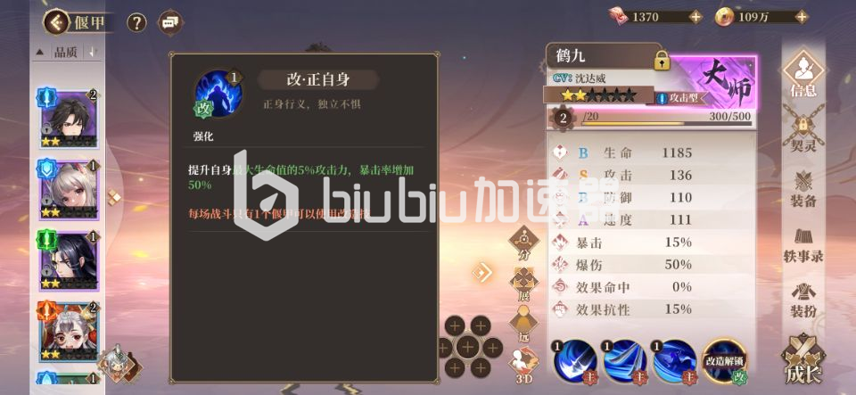 鹤九厉害毋庸置疑,而我们需要注意的就是早日完成改造技能,可以参加参水殿来获取升级材料完成改造哦。