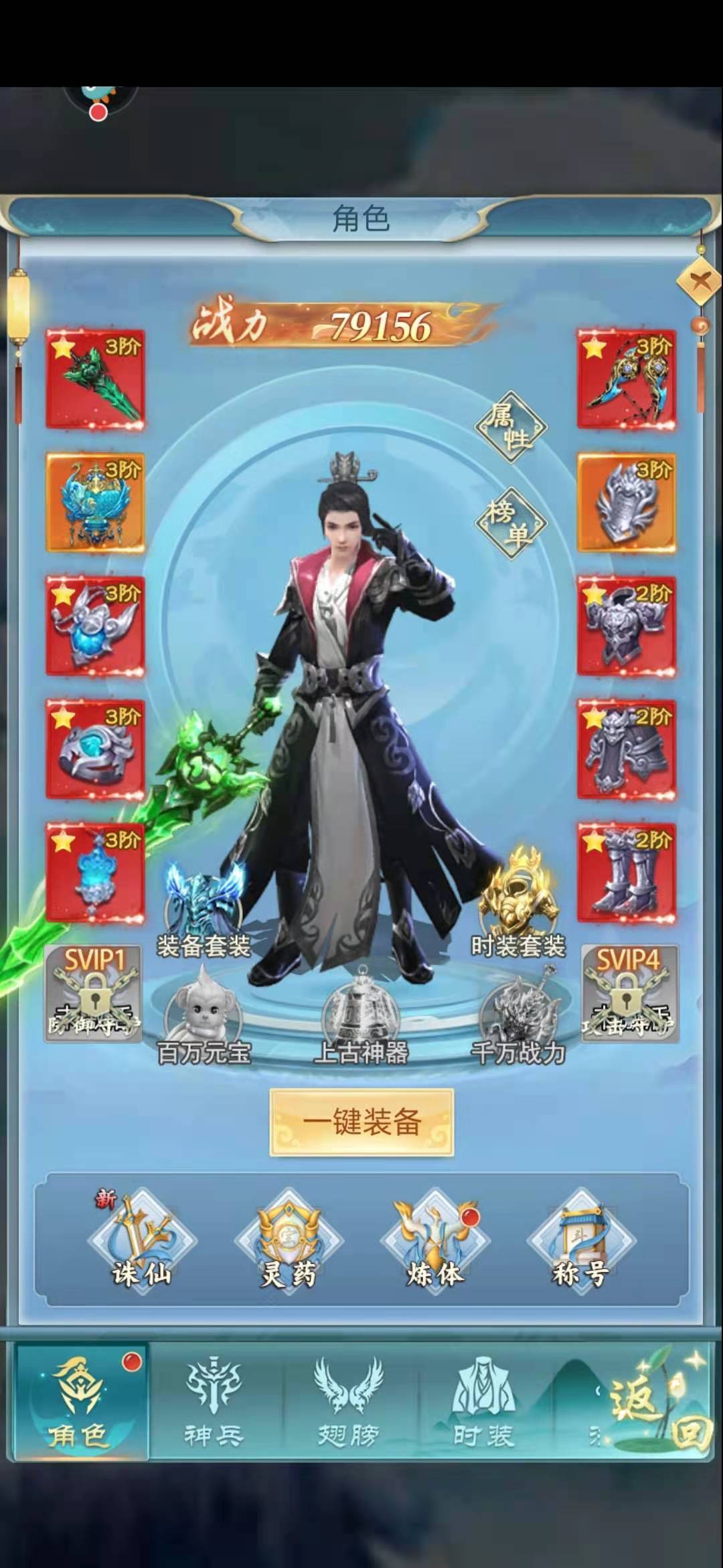 玩家可以通过直接点击角色界面,更改自身装备,最好就追求一些全属性,这样会让游戏角色变得很强,除此之外,还可以进阶拿神兵,然后再把翅膀的战力属性进行提升。