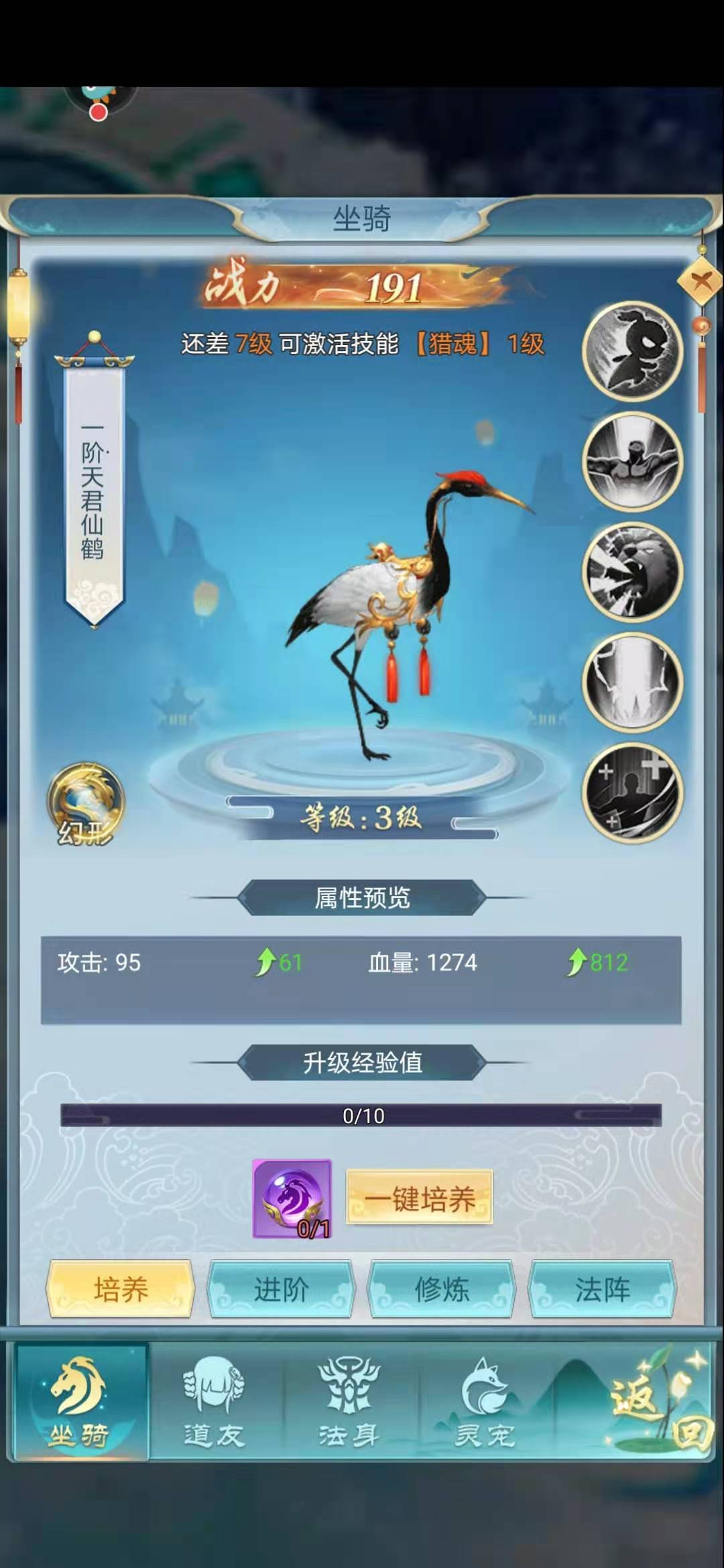 这个栏目里,还有道友加持的功能,就是玩家在平民阶段的前期,可以去获得一个道友,像有些剑仙玩家用的就是一些法师道友,能够进行高速的击飞,除此之外,还有一个法相天地的功能,在游戏里是叫法身,用这个就能提高自己的防御属性。