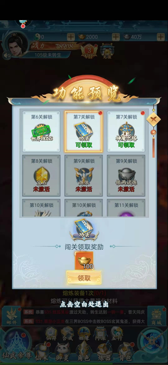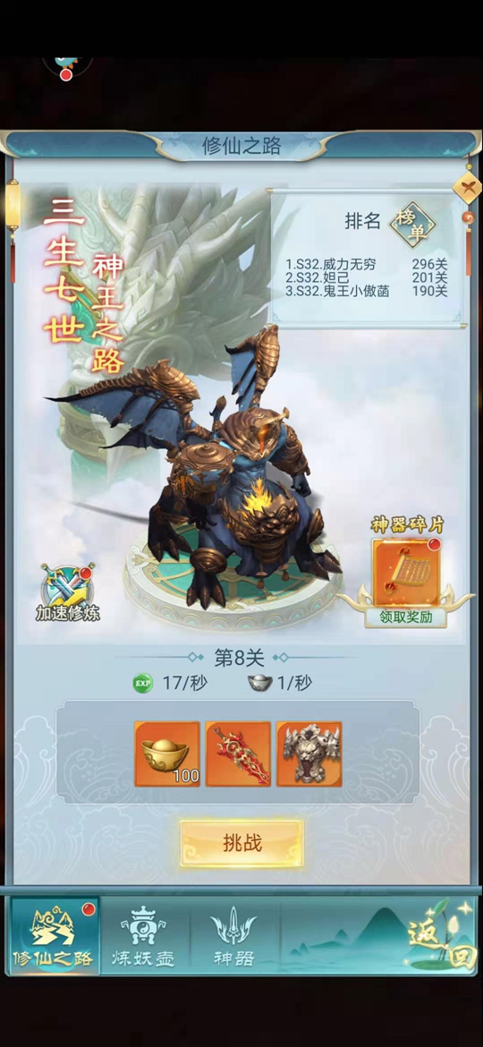第六,修仙之路关卡奖励。