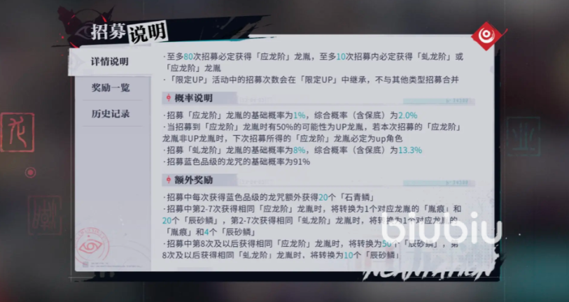 大保底制度:若累计招募七十次,则确保玩家能够获得自己指定的“心愿龙胤”,满足玩家的个性化需求。