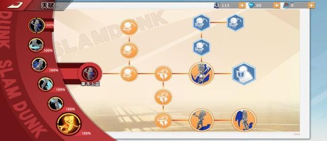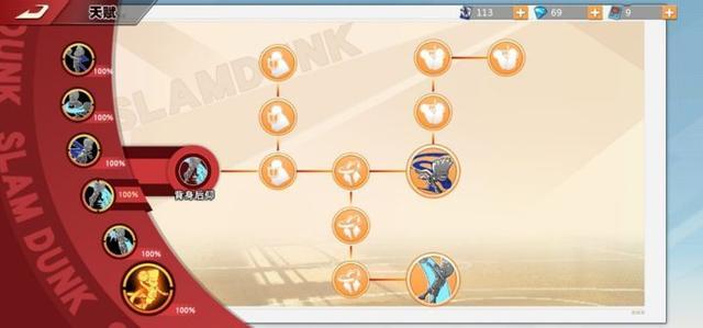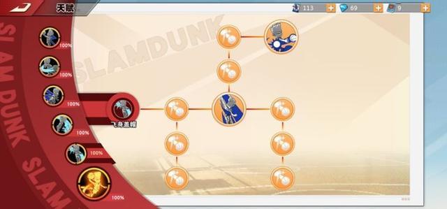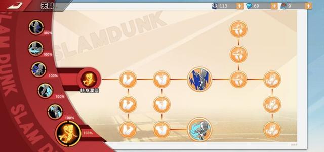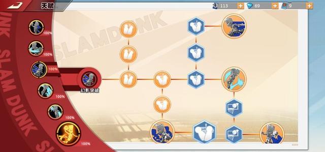 果冻上篮:首先来说仙道的第一个技能——果冻上篮,这个技能的延伸有三个:拉杆上篮、弹跳果冻、负角度上篮,前期尤其是单排选手,必须先点拉杆上篮,因为低段位的玩家很少有补防意识,当你幻影突破甩开防守人杀入篮下时,只需要面对中锋一个防守人。需要迅速操作,这里再给大家分享一个技巧,利用左边方向键可以控制拉杆方向。
