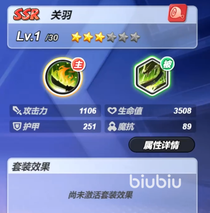 关羽是游戏里面的SSR角色。该作之中角色是有着稀有度的划分,正常情况下高稀有度的角色是比低稀有度的角色能力要强的。本次的关羽在游戏里面是传统的武圣形象,其使用的武器是青龙偃月刀,从目前数据来看,关羽总的来说各方面参数都很强,是一位很强力的人物,新人和老手都适用。