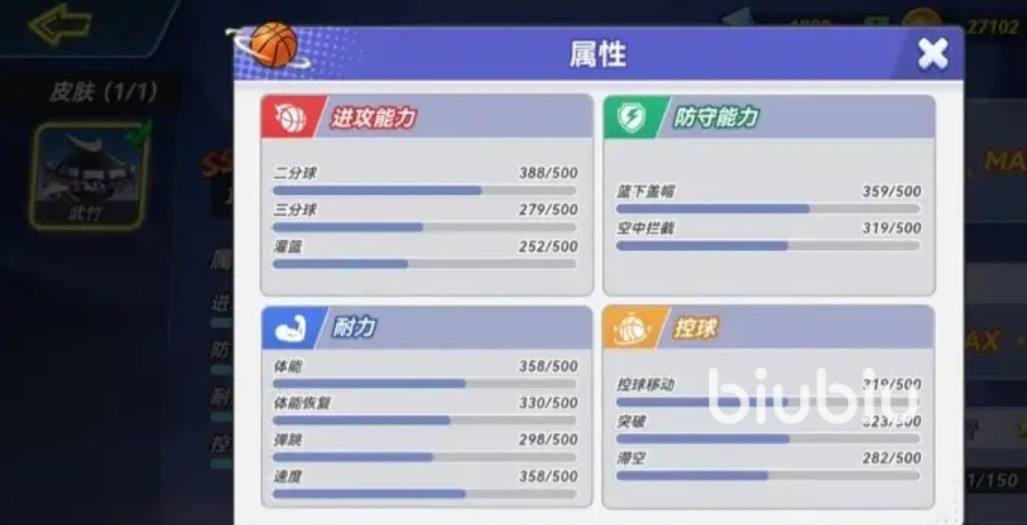 首先通过看下面武竹的数值面板,大家能清楚看到他的两分球进攻能力十分突出,在结合他的天赋“仙风道骨”,该天赋效果是能在自己处于两分区内,进行后仰投篮时,带有小幅度的后撤闪身,提升命中率,并且成功命中后会回复少量体力。