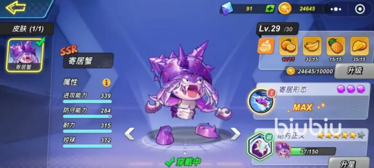 寄居蟹是一个比较灵活的英雄,他的主动技可以钻入壳中,进入到寄居形态,简单来说就是变成一个任何敌方普攻都打不到,并且行动迅速的形态,此时点击攻击键还可以将上方敌人夹碎,他的被动会让普攻变成钳击,敌方每累计遭受3次钳击就会进入到中毒状态,降低移动速度并且每秒丢失1点体力,升到4星变成两次钳击就能触发中毒,大家伙可以利用好敌人扣篮后从空中下来的一小段不能动时间,连续两次普攻来让敌人中毒。