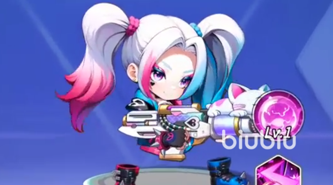 嘻嘻这个角色并不是该游戏里的原创角色,不过由于外形吸引力比较大,有独特技能与互动玩法,她手中拿着机械感十足的枪,这个枪就是她主要的输出手段,首先她拥有泡泡枪这个能力,能发射出泡泡将对手困住,限制对手的行动力;这个技能效果就让她的爆发力很强,容易得分;