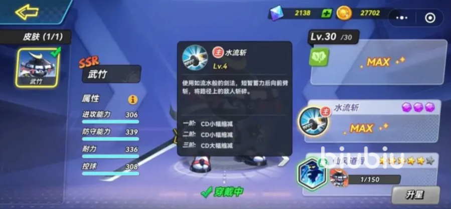 他的主技能“水流斩”会用像流水一样高超的剑法,向前进行劈砍将路径上的敌人给斩碎,此时敌方持球也会让球一起掉落,他的普攻是比较重点的攻击手段,分为3段根其他角色一样第3段带有击倒效果,但不同的是他的会附带小范围的突刺攻击,给对手难以预料的一击,整体来看武竹各方面都比较均衡,在进攻方面较为突出,主技能也可以进行防守。