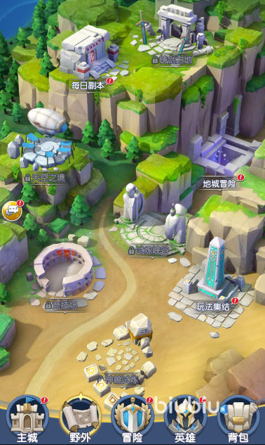 最后我们回到主页,点击“野外”,就可以看到这里会有很多的活动,比如“每日副本”“地城冒险”“竞技场”等,不过这些都需要玩家到达一定的级数并且通过了规定的关卡才会解锁,这里也是玩家另一个获得资源的好地方,比如“每日副本”里就会有经验、金币、突破石三种玩法,每一种玩法通过一关以后,都可以获得大量对应的资源。