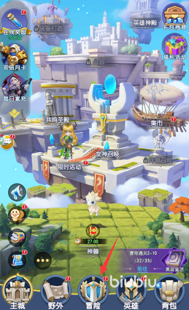 首先就是任务了,这也是玩家前期升级以及获得资源的主要方式,一般来说游戏内会有新手引导,会告诉我们从主页的“冒险”进入,然后进行关卡挑战,每完成一道关卡都会给相应的奖励,并且在达到了游戏内的通关目标和成就以后,还可以获得更多的奖励。