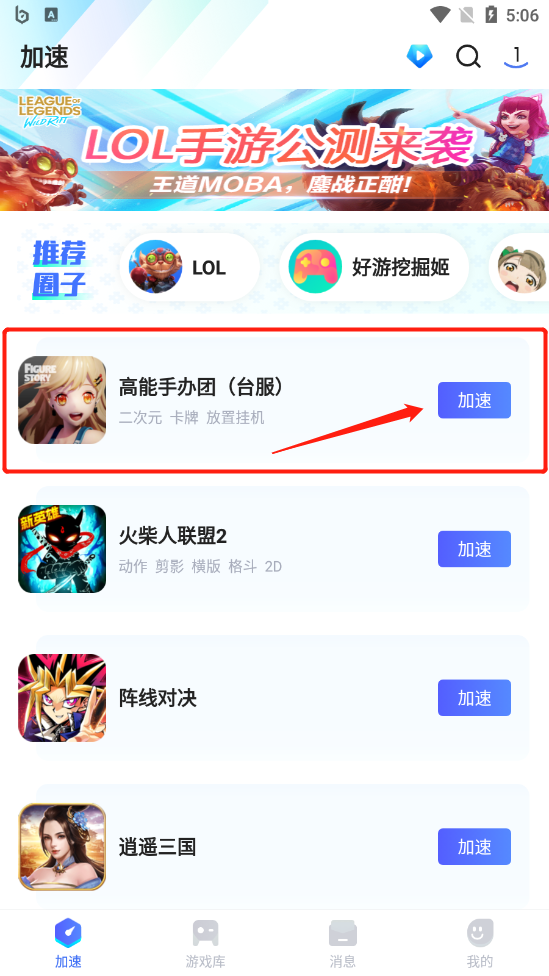 此时再回到biubiu加速器首页,即可对这款手游进行加速。
