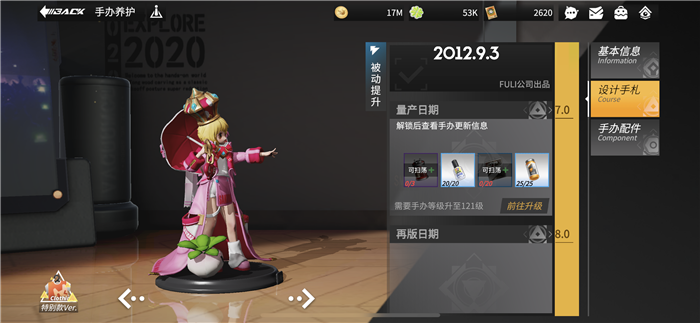 值得一提的是如果将121级的手办设定为干事,则在后宅展台上的展示手办也会随之提升等级到121级,这样就不要每个手办都进行突破升级啦。