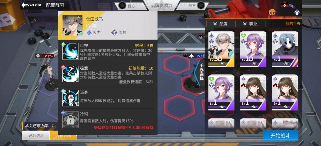 3、前面我们提到,想要仓田龙马打出高额的输出,需要队伍的配合,同时也要注意站位。对于刚开始接触这个游戏的萌新来说,这些是比较困难的。
