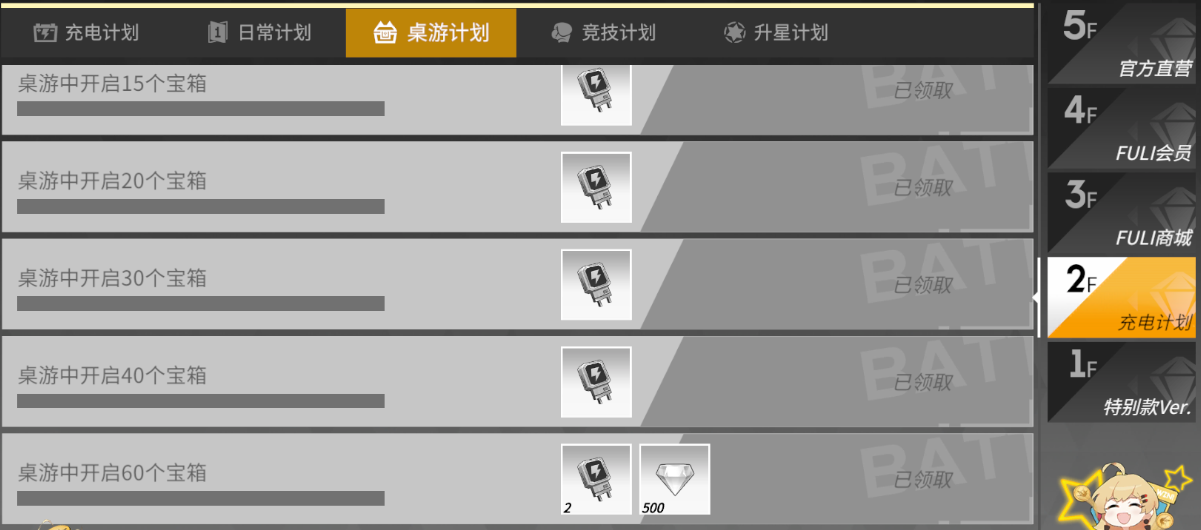 但是充电计划会在4周的时间里更新1次,因此不提议新人在活动将要结束的时候买,错过了从每日活动中搜集到的电力值就会很亏了。