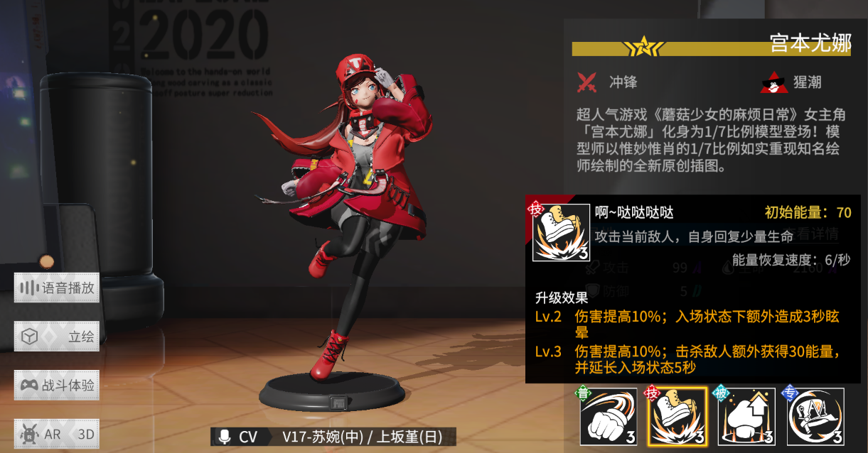 辅佐位有真恋固然好,没有的玩家可以选择用艾里克希娅,在上不了好徽章的情形下,艾里克希娅加命中的价值是比真恋的加爆击的价值还要高的。冲锋位相对随便一点,不用阳子、阿尔弗雷德这类输出天花板,宫本尤娜、赵云、桃乐丝、玲都可以上,容易搭配是菜刀队较大的长处。这类阵容的攻击速度和暴击率都非常高,只需大招启动后冲锋和火力能把血吸回来,推图基本上没什么压力。