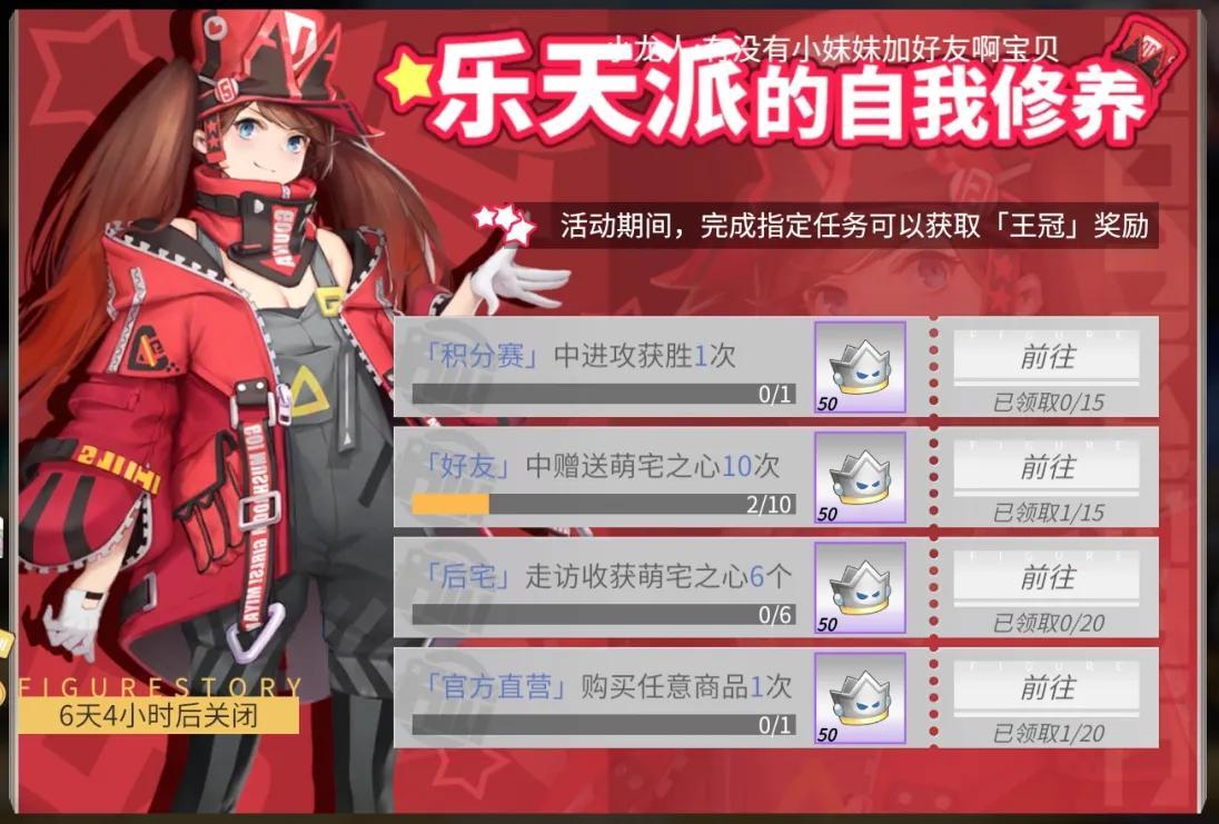 乐天派的自身教养活动中做完1个活动能领50王冠,活动一共能做15+15+20+20=七十次(官网直营店每一天购买3样金币的恰好足够,能够不花钻石),能拿到3500王冠,如此加起来有1500+3500+3432=8432王冠,纵然你在线挂机获得的王冠少一些,开到宝库第五层也OK。