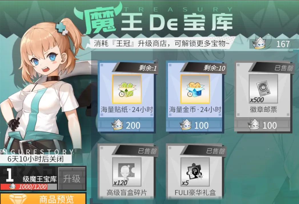 说起来魔王的宝库已经不是第1次出场了,看了就知晓魔王宝库分为六级,1级宝库升级就得换取1200王冠的奖品,辣么要想得到心仪的奖品,王冠得够多才行。咱们先讨论一下0氪游戏玩家能拿若干王冠。最先每日正常签到活动中七天能够拿到600+300+300+300=1500王冠。