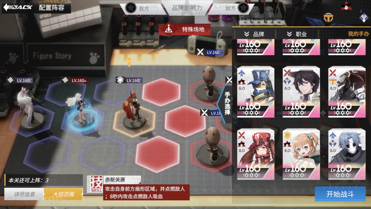 因此阵容上命中概率最高的手办,和优先选能够强杀boss的手办,噩梦关卡与困难关卡的阵容在选择上是有分别的。由于敌人数量太多,因此咱们要选aoe伤害高的手办。在噩梦关卡的手办中你认为第1的aoe角色会是蓝莎么?实际上是仓田龙马的aoe更强。