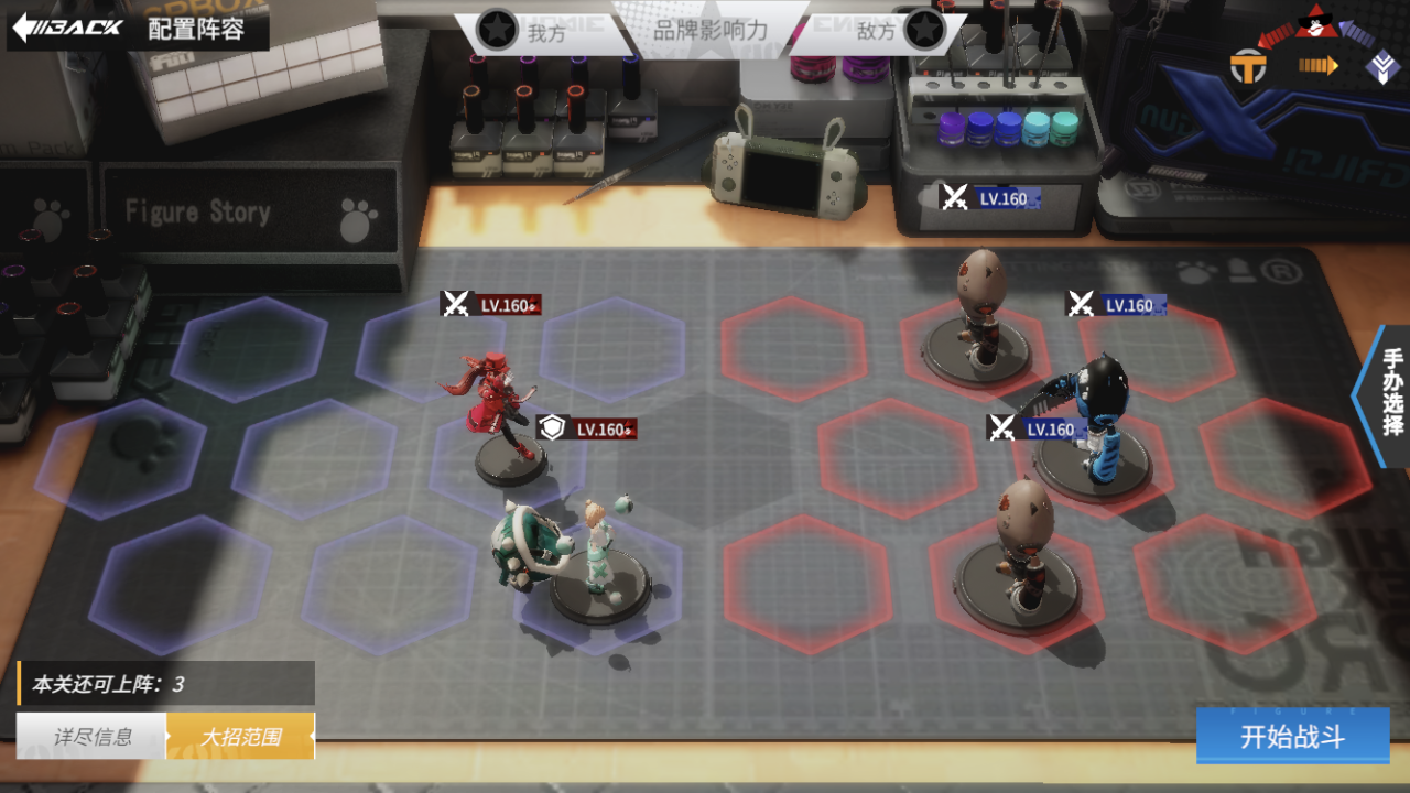 在以前的思路上克里斯的确能够速杀中间的boss,然而扫除小怪的能力却不太行。因此咱们要选单体斩杀力量更厉害的手办,小编推荐中路选真田、蓝莎与明智光秀!蓝莎海恩是本关一定要上阵的手办,由于需要用蓝莎海恩的大招来打断对手的aoe伤害技能,随后真田使用点燃能够大大提高后排光秀带来的伤害!光秀还能够减少敌人的防御能力,在后期清算怪物的时候能大幅度提升效力。如此咱们的中路就布置好了!