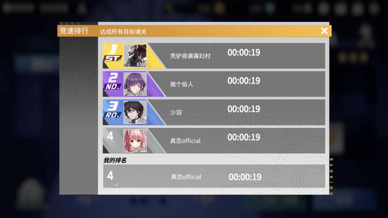 现在小编绯色心的困难结果是22秒通关,排在本区第3。但是前三都在22秒也没有什么争得的意义了。