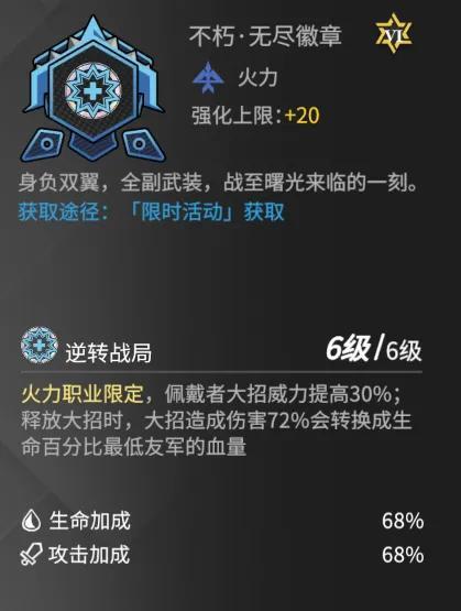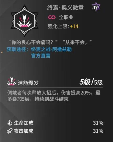 大家知晓了洛瑞丝是斩杀流的角色,小编就来推荐适配的徽章吧!徽章搭配上当然是首选不朽无尽,这一个徽章能提升大招的伤害,还能减少己方人员的伤亡。但不朽无尽作为之前活动的限定徽章,现在是无法获取的了,没有的人还得带斩杀流的传统徽章终焉奥义,保障斩杀成功的概率。假如升级后发觉洛瑞丝的普通攻击触发被动技能的几率十分高,就带上永恒梦魇来提高她的攻速,能够频繁打晕敌方射手也一样是很好的选择。
