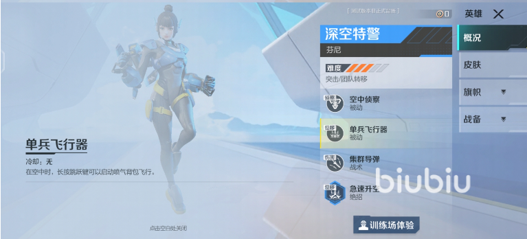 急速升空是芬尼的绝招,这个技能的主要作用就是为喷气背包注入能量,选择释放的话就会消耗刚刚注入的能量了,值得一提的是如果使用这个技能的时候不需要进行飞行模式,那么可以减少技能的冷却时间,主要还是带领队友进行升空跳伞。