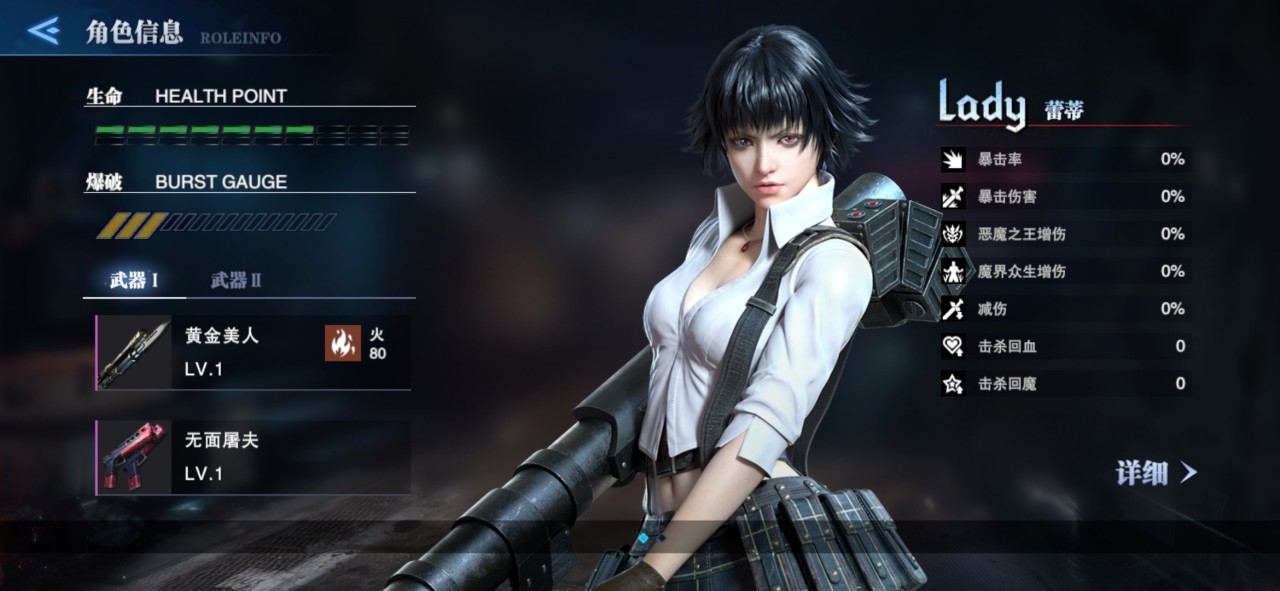 总体来说,蕾蒂是一个操作性比较大的角色,但是相对于但丁与吉尔来说输出比较依赖武器的符文,以及角色的属性提升,总体来说,培养的性价比不是很高,而且角色的后摇过长,导致角色连招的打击感也有所欠缺,个人不是很建议来选择着重培养蕾蒂这个角色,新手的话,还是玩但丁跟维吉尔比较好一点,如果真的很喜欢蕾蒂,还是可以玩的,她的远近配合的技能还是很有观赏性的。
