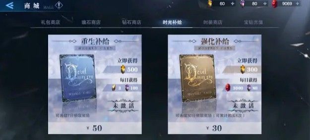在这款游戏当中,玩家可以购买的月卡有三种,分别是重生补给、强化补给和猎魔执照,玩家在购买了这些月卡之后,每个月就可以获得固定数量的资源,帮助你在游戏前期快速地提升角色实力。
