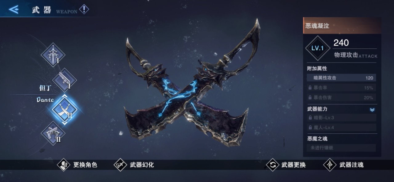 我们用但丁来作为例子,但丁的两件主武器分别是大剑以及双刀。副武器则是双枪跟霰弹枪,两套分别怎么搭配我认为都差不多,霰弹枪跟双刀配合可能更好一点。华丽流的主要使用方法是如何在战斗过程中打出华丽的切换武器的连招。首先我们如果装备了两套武器,之后在游戏副本的过程中,右上角就可以切换武器,也就是说你可以边攻击切换武器,那有了这个功能后我们就能打出很多套我们意想不到的连招。