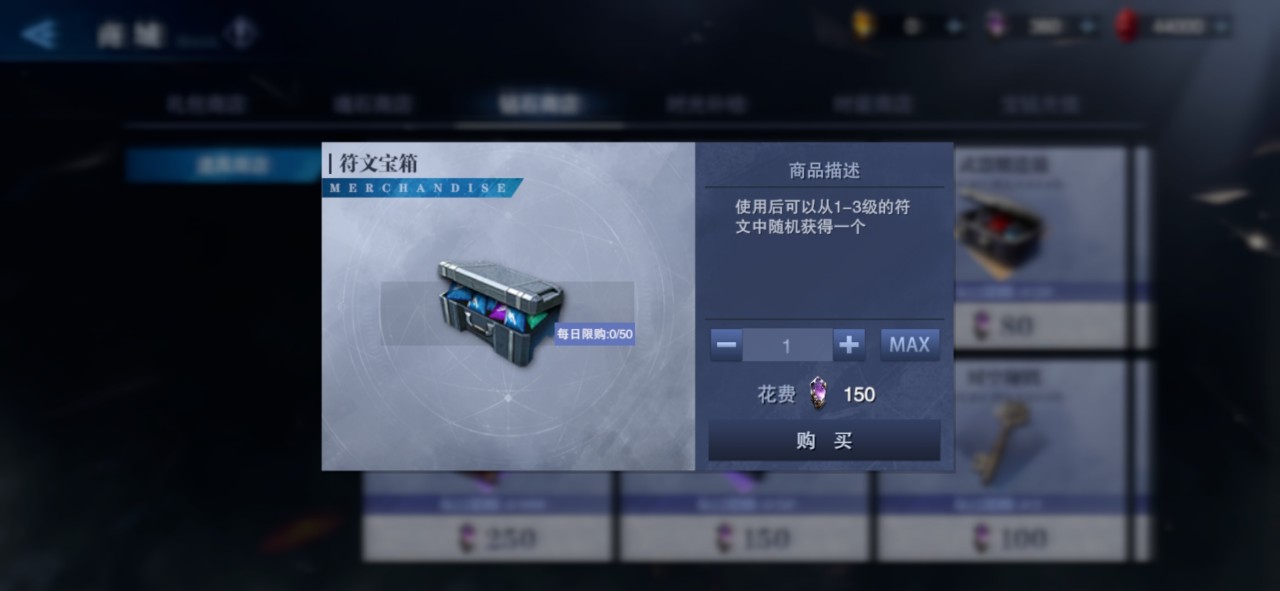 符文的获取方法是去商店中购买符文宝箱,然后再在背包里打开,就能随机获得一个1到3级的符文了,一个符文宝箱的售价是150钻石。也可以通过组队活动打副本来获得,符文是有等级的,三个同等级的符文可以用来升级,升级的地方就是上面提到的符文大师,去找符文大师就可以把拥有的三个同名称同等级的符文合成成高一级的。