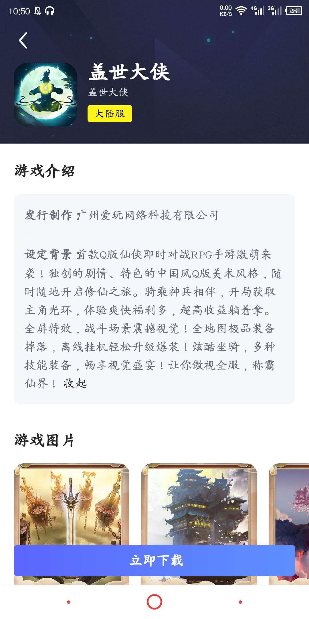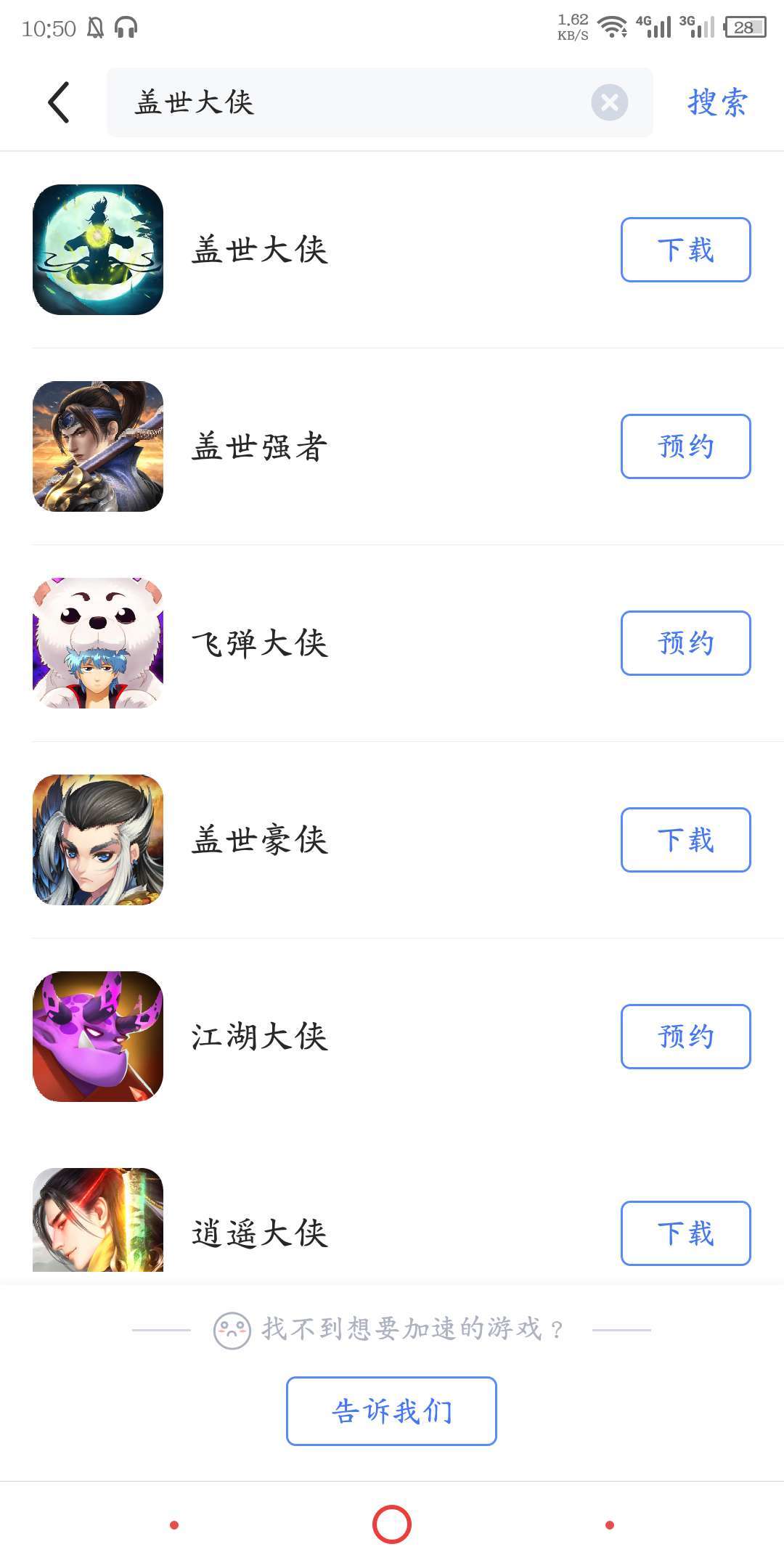 玩家在biubiu中搜索盖世大侠,点击搜索结果的第一个进行下载。
