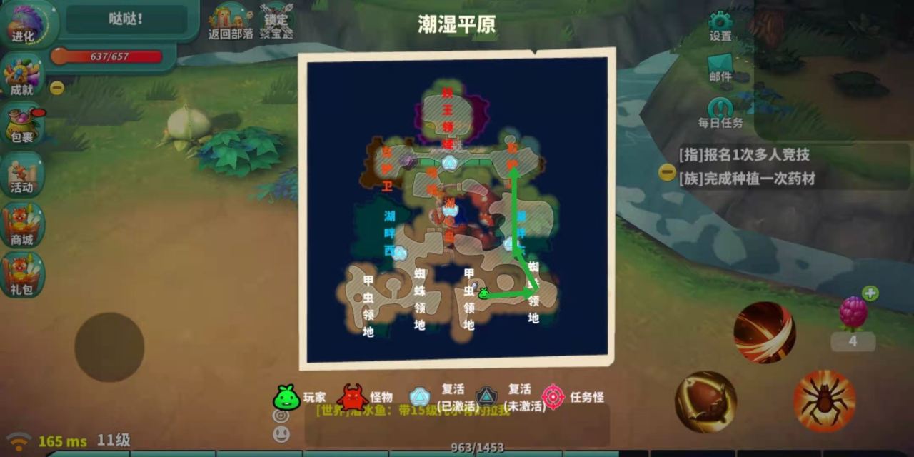 出生地是进入游戏时初起点,从出生地到右护卫的路线是最短的,但同时挑战也是最大的。前后要经过湖心岛、嘎嘎两个怪物的领地。