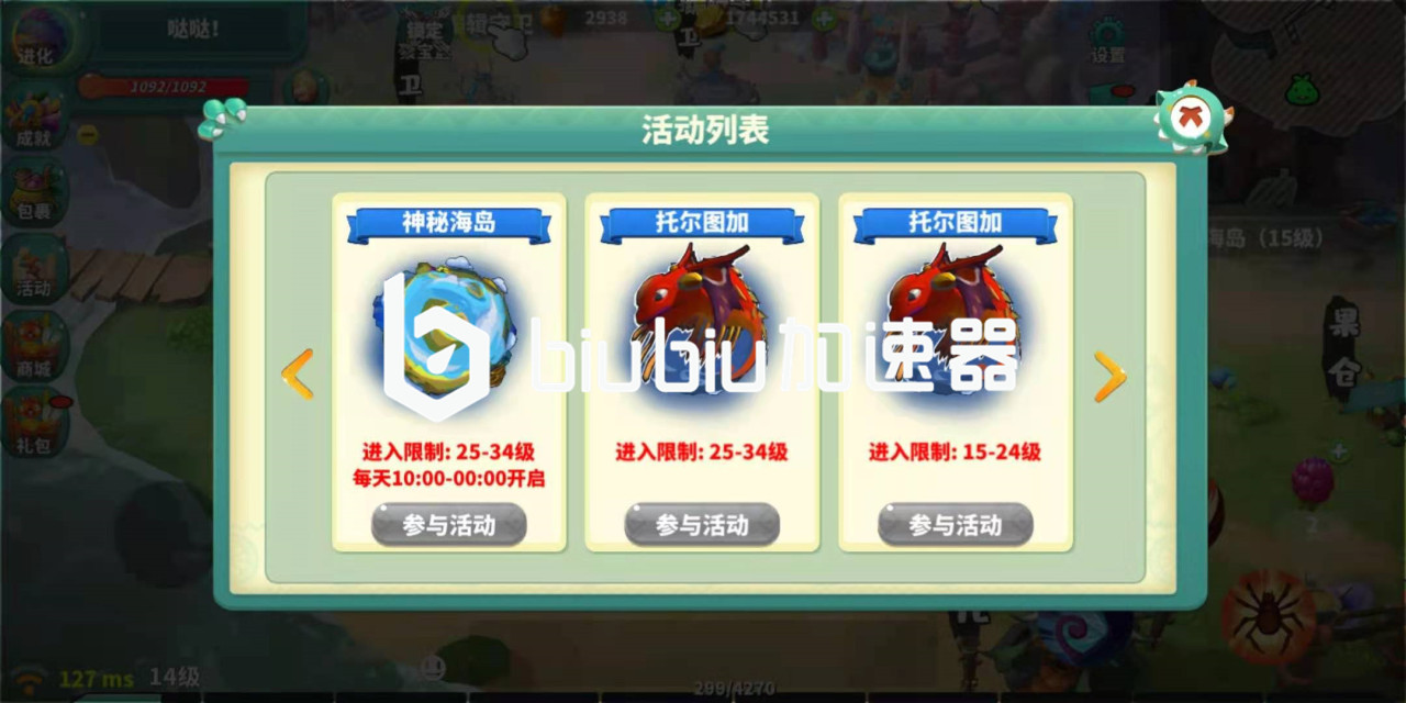 玩家的等级达到要求后,神秘海岛解锁,在这里可以得到大部分的资源。每次进入海岛必须凑齐三个人,只要满足等级和人数,玩家在进入神秘海岛后就可以兵分几路,在这里的玩家如果想要掠夺资源,就只能朝队友的资源下手。