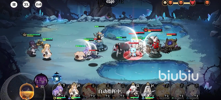 先来看基础战斗方式,这是横版策略攻防玩法,如果更换角色需要消耗费用,往左推兵线,在队长没有死亡前,将BOSS击杀,就算成功通关,一般都是飞速推进兵线,空降核弹斩杀BOSS之类的流派,其他解语者如果死亡退场,在一定的时间冷却后,是能重新上场的,不过需要增加费用,整体战斗流程相对还是比较简单的。