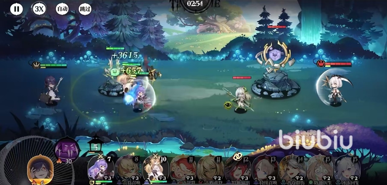 琳的第1个技能冥域展开,可对敌方全体目标造成大量魔法伤害,并有几率附加附魂效果。对方被附魂之后,下次行动时会对友方释放普攻,该效果可以有效打乱对方的输出节奏,在提升技能等级后,不仅造成的魔法伤害有所增加,附魂触发的概率也会提升,在技能达到三级后,场上每拥有一个游魂,附加附魂的几率还能额外提升。