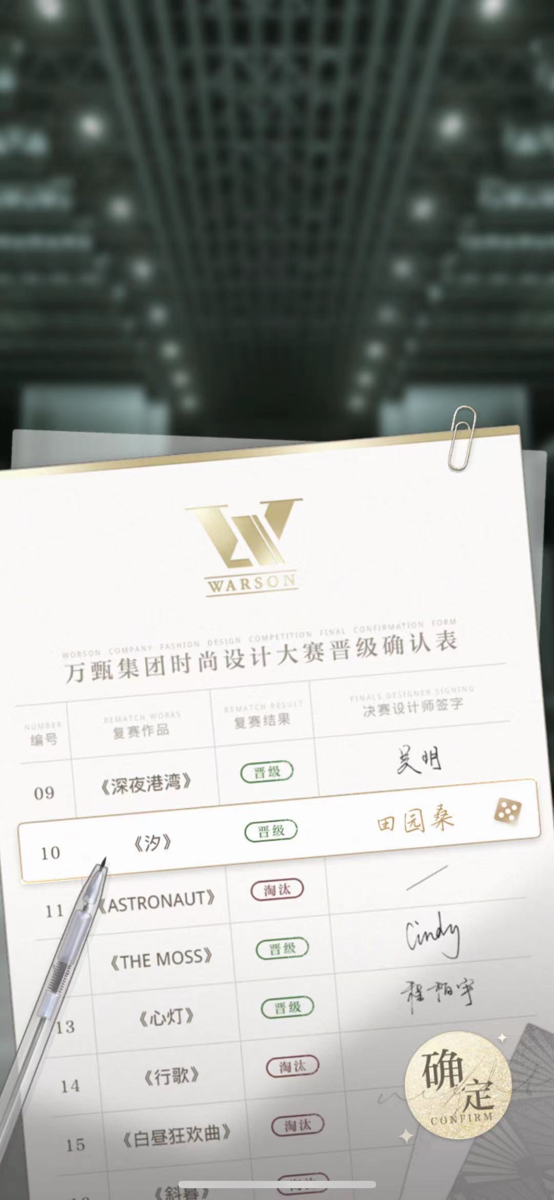 游戏中更改昵称主要有以下方法,首先刚进入序章得知女主获得了万甄集团时尚设计大赛晋级确认表,在确认表中需要填写女主的信息,上面有写到晋级名次,参赛作品信息等等,在最后有签字确认环节,玩家可以通过筛子随机选取姓名,也可以在对话框中自行输入名称,增加游戏的代入感,输入完之后点击确认即可在游戏中使用自己设置的昵称进行游玩。
