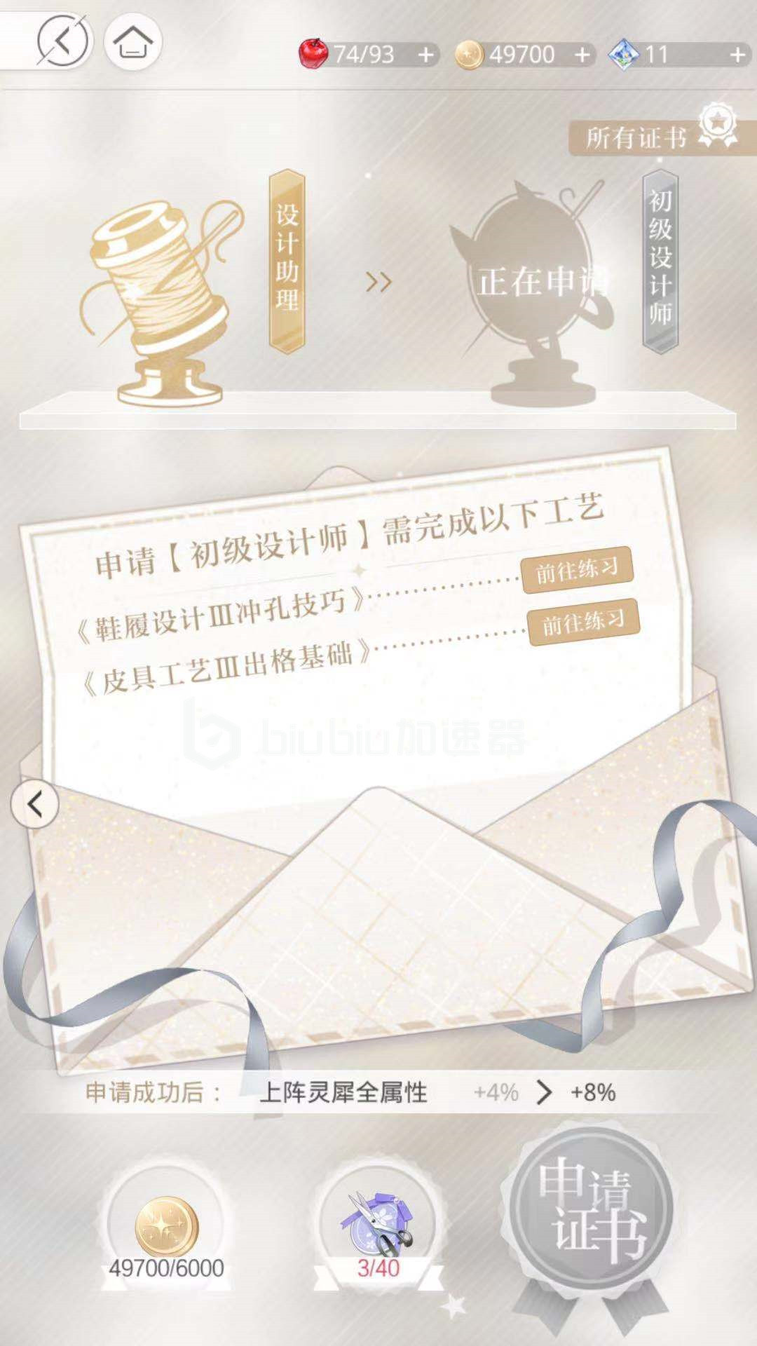 申请初级设计师成功后即可收到offer,成为初级设计师。上阵灵犀全属性由4%提升至8%。