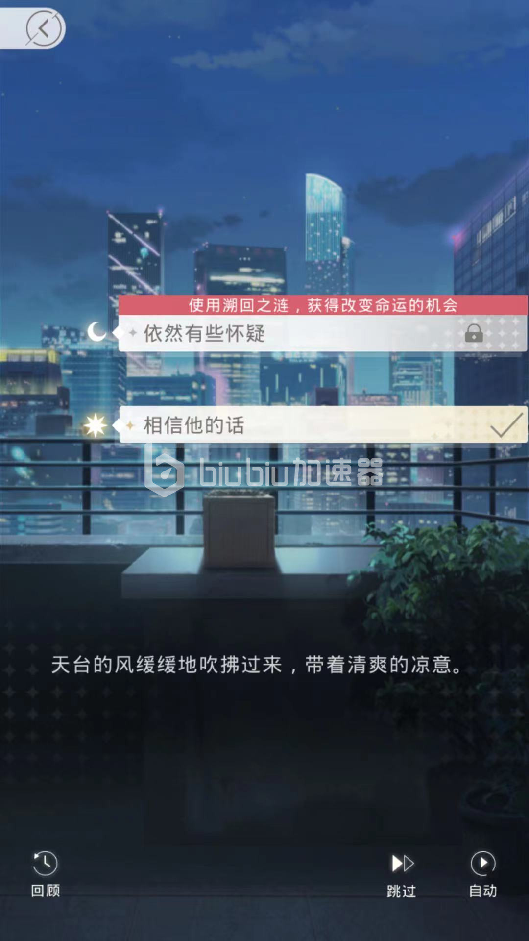 玩家进入第1个章命运的拐点中可以看到包括多种不同的小关卡。在几个关卡中包括多种不同的选择。比如在第1关卡中,玩家可以通过继续与安安聊天或告别安安专注于比赛进行选择日或者是月,如果选择了日选项。