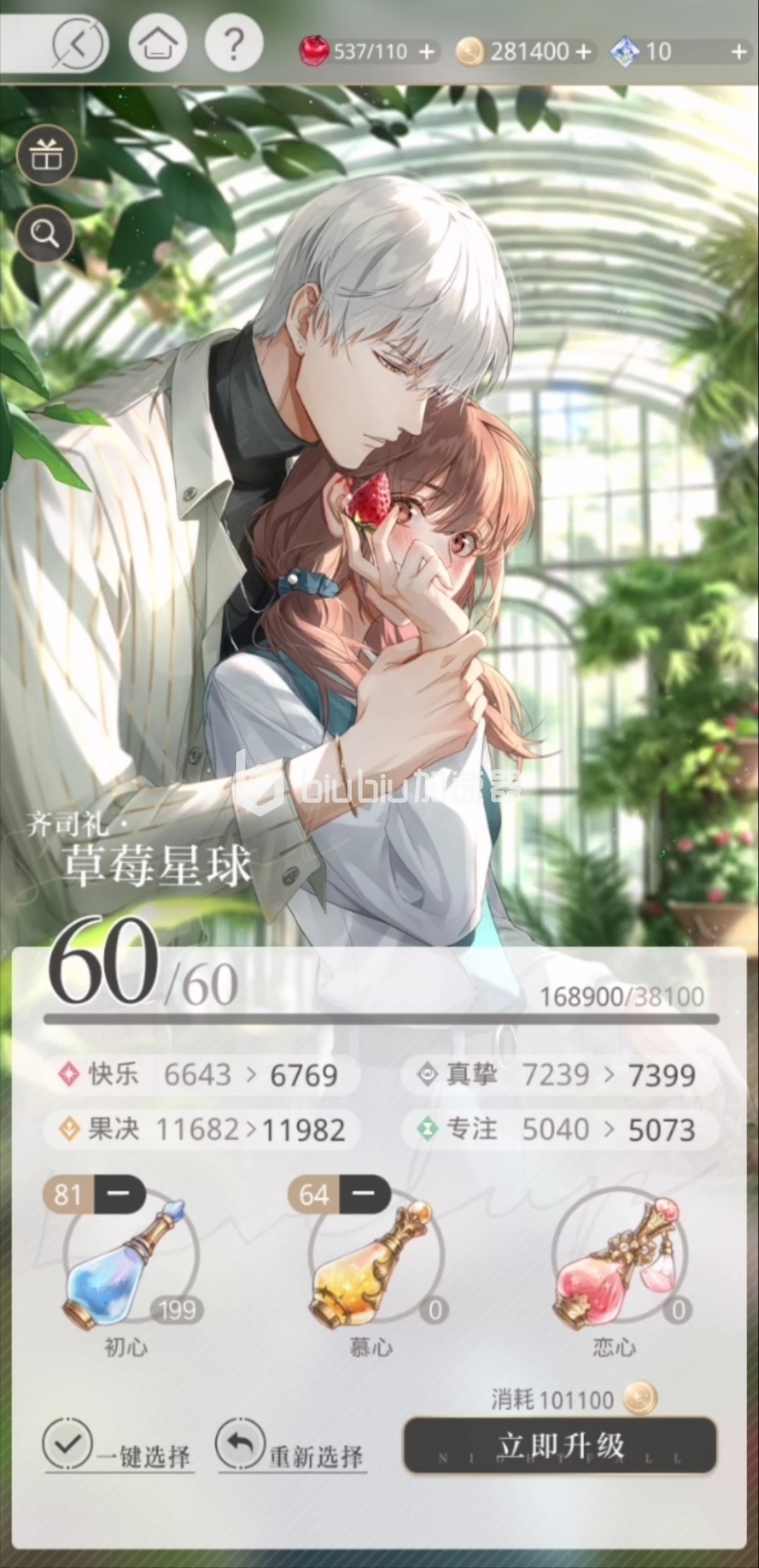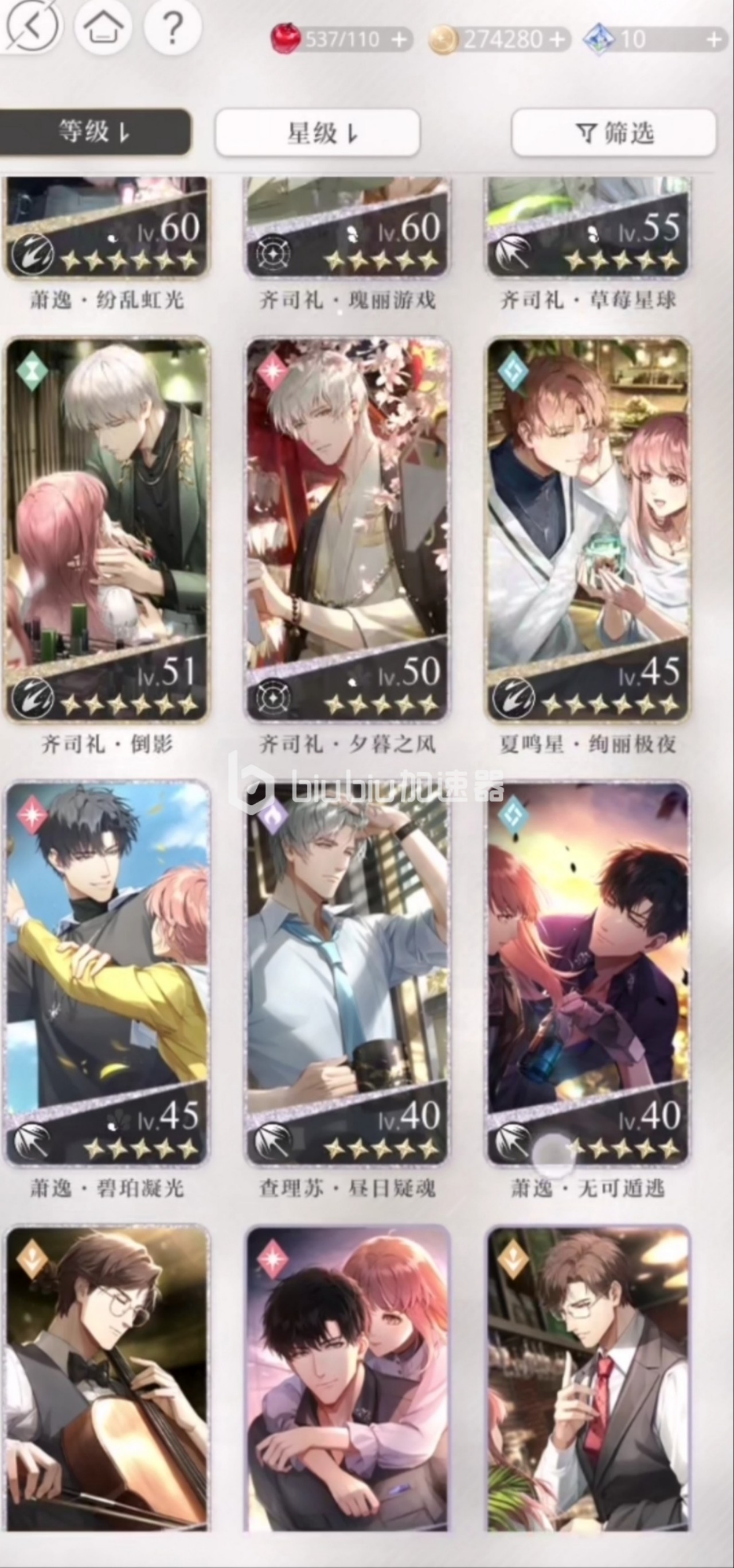 而且光与夜之恋中的关卡需要每个属性的侧重点不一样,如果只培养了一个种类的卡牌,过某些特定的关卡的时候就会比较的吃力了,所以各个属性的卡牌都得均衡的养成一下这样才能过关的时候,需要什么卡牌就可以选择什么卡牌来打泡泡了。