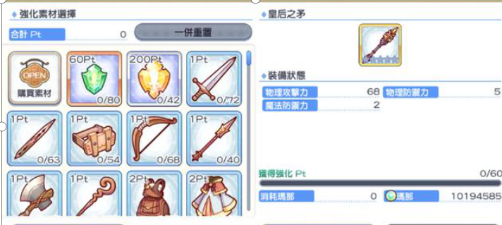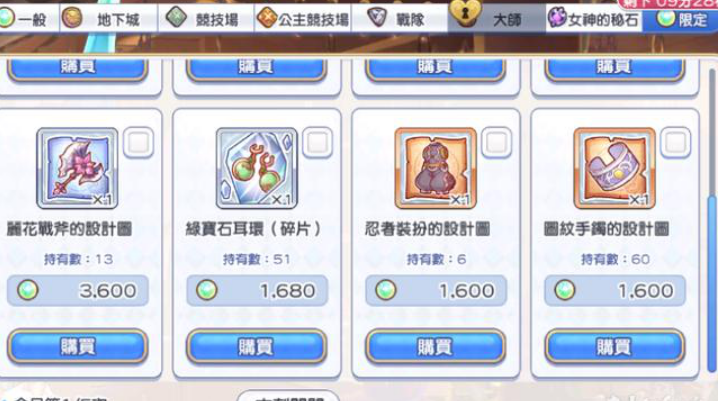 小编提议撇开一些非常短缺的物资(绿耳饰等),其他的都不要购买,大部分装备后期都会在游戏中大量溢出,会虚耗很多mana,所以不建议各位玩家购买。