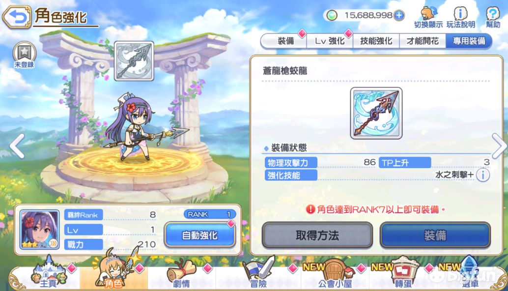 苍龙枪蛟龙:子龙的专武,增添的属性是物攻力和TP回升。增添的都是打击属性,且有关键的TP回升,因此在升级时发动直接拉满。