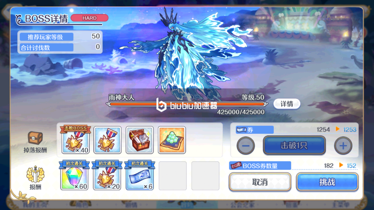 本次的玲奈的彩虹舞台活动BOSS名为‘“雨神”,其等级会随着难度升高而升高,简单难度下只有25级,即便是刚入坑的小伙伴也可以轻松通关。雨神作为限时活动BOSS而言讨伐难度还是比较低的,其常态状态下的攻击为单体中等幅度的魔法伤害,释放UB则会使得全屏下雨,对我方全体造成较高的魔法AOE伤害。