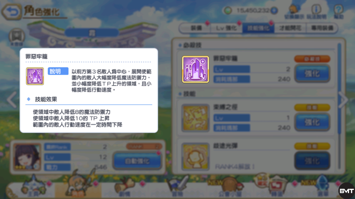 (2)升级技能:升级技能等级可以提升debuff的效果,提升技能等级需要消耗马娜(相当于其他游戏中的金币)。